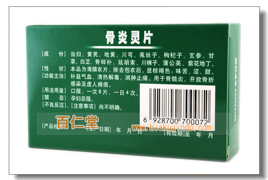 百仁堂漢方薬局 ・ 骨炎霊片(旧名:天仙丸3号)